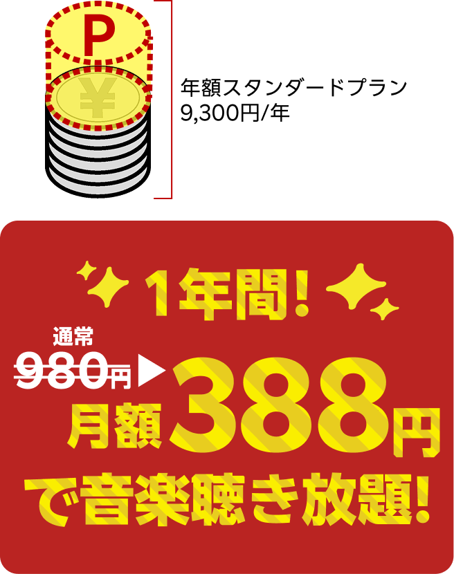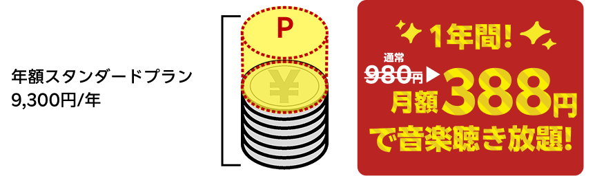 期間中にキャンペーンコード「Nengaku_Gift」を入力し年額スタンダードプランへ新規入会+初回課金で、年額料金の半額分4,650ポイントをプレゼントいたします |