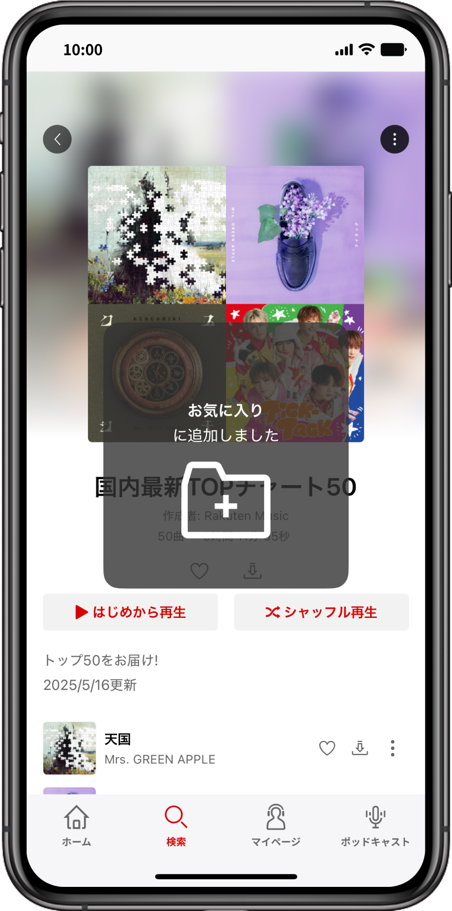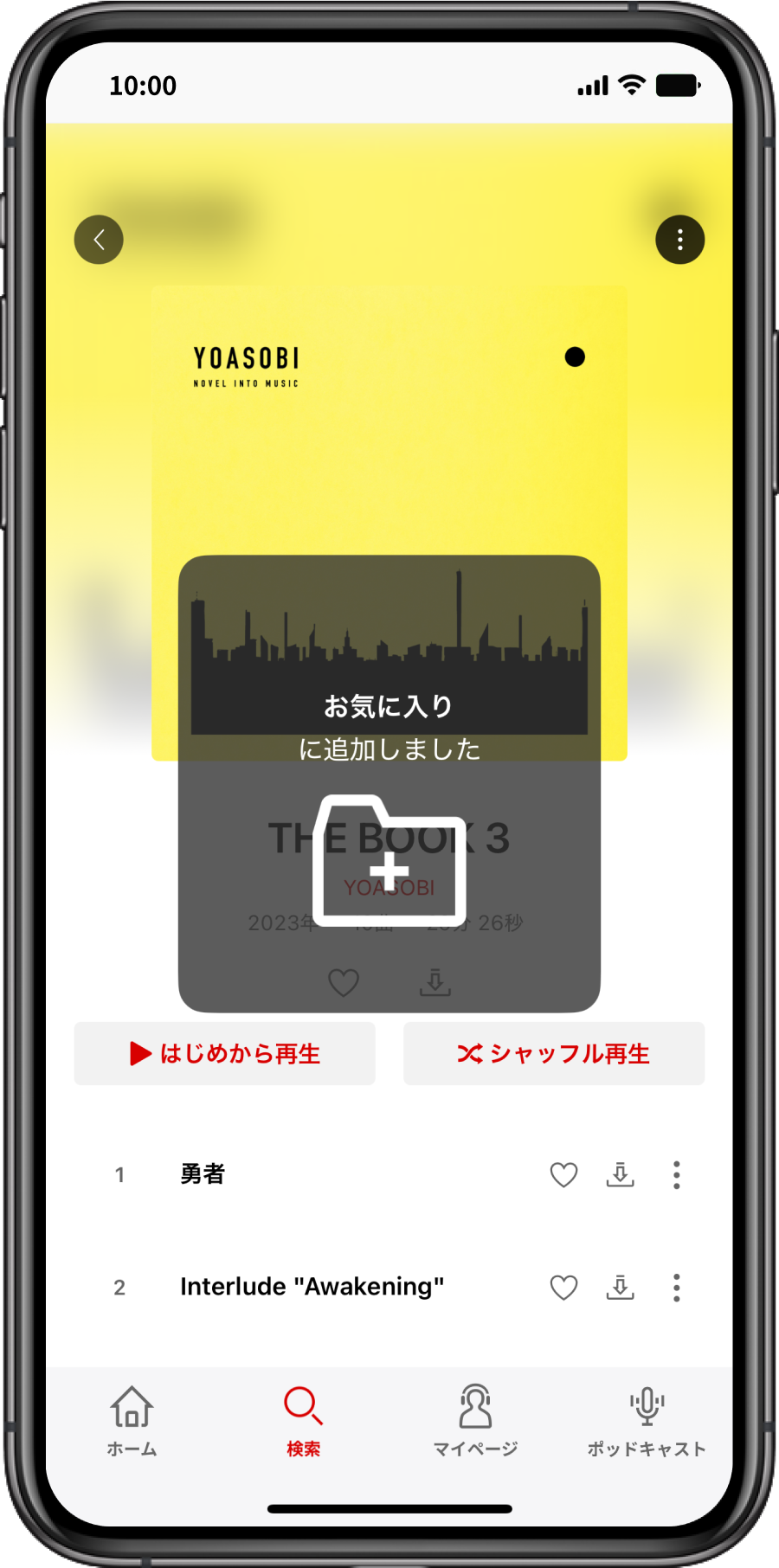 アルバムに収録されている曲のすべてがマイプレイリストに追加されます